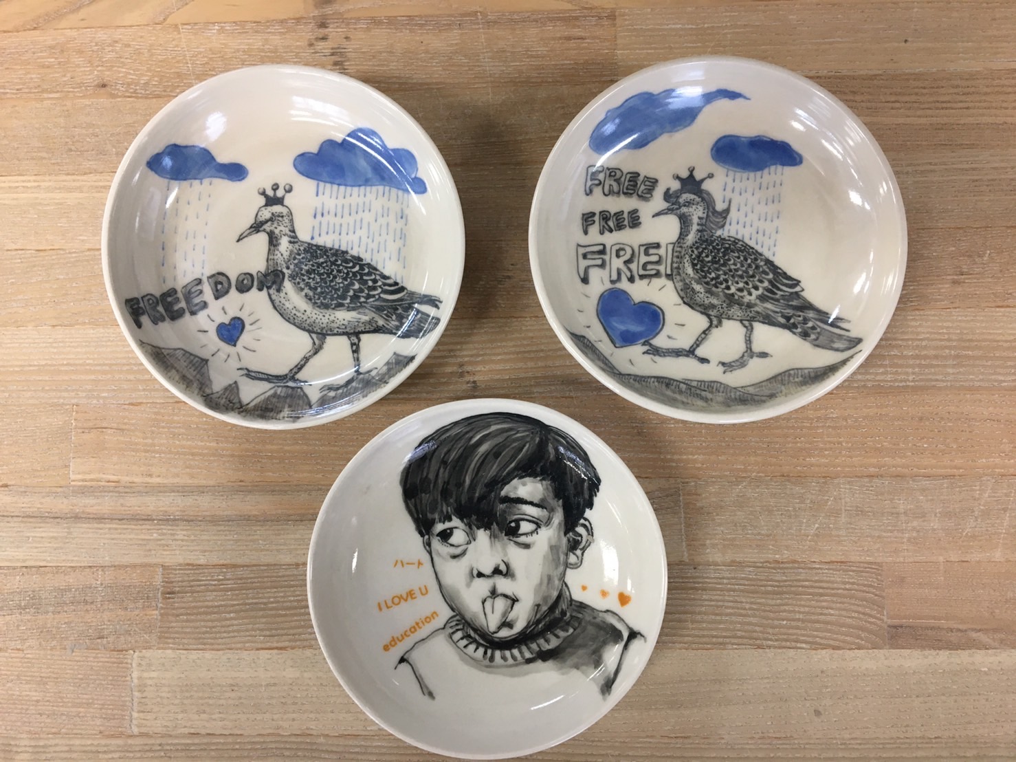 転写を使ったりして器に伝統絵の具で絵を描く