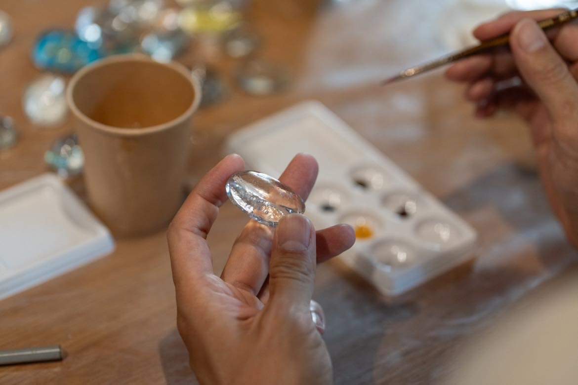 内容 :小石型のガラスに好きな絵を描いてペーパーウェイトを作ります。
